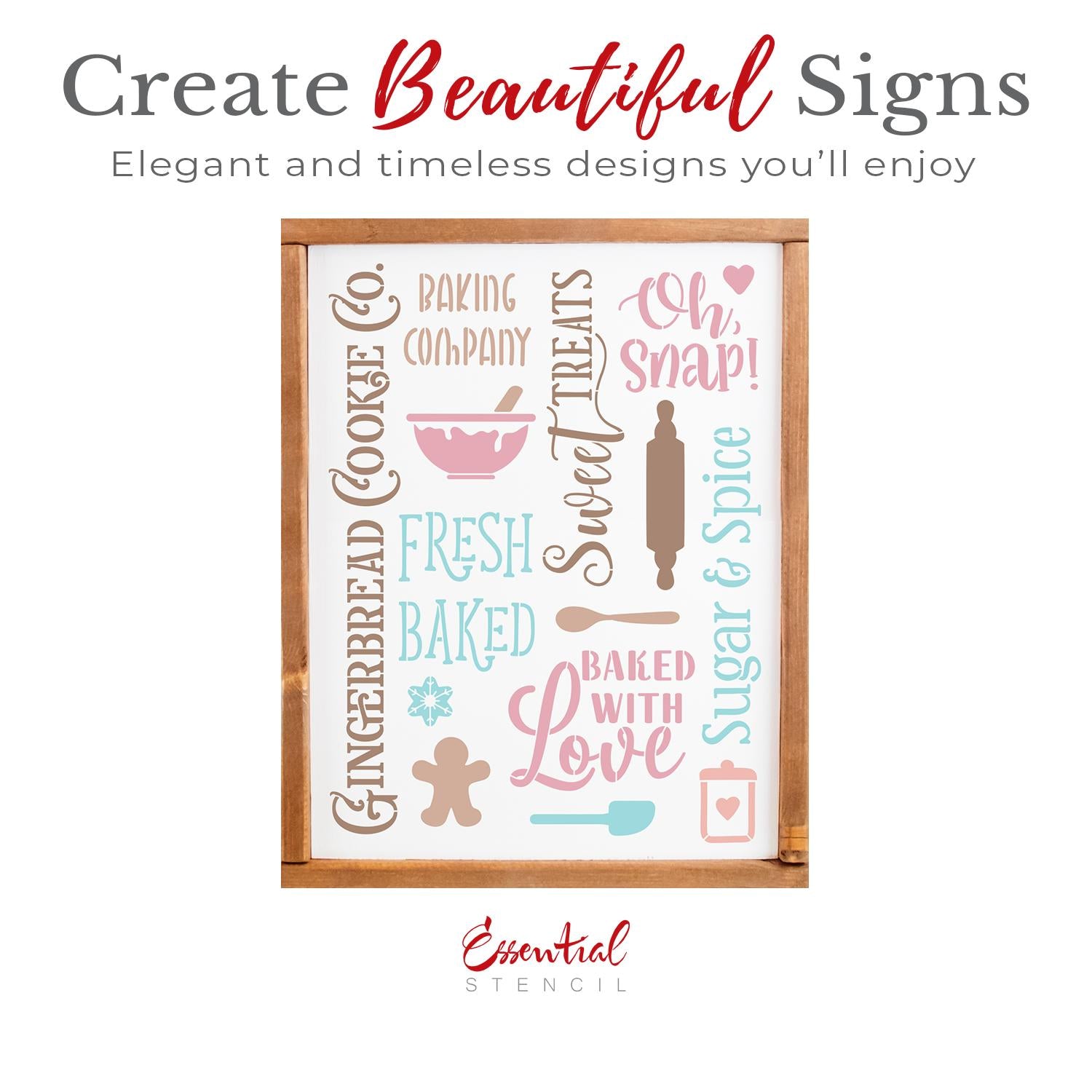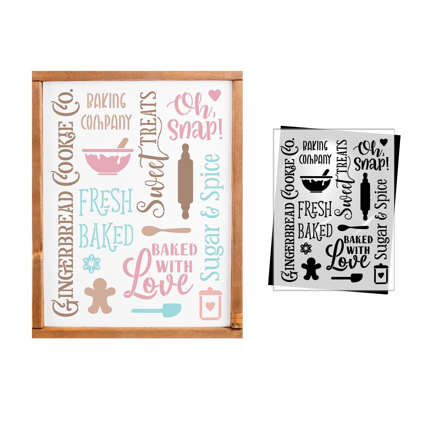 Perfect for farmhouse holiday kitchen décor, tiered trays, or festive baking-themed signs. Features fun sayings like “Baked with Love,” “Sugar & Spice,” “Fresh Baked,” and more.