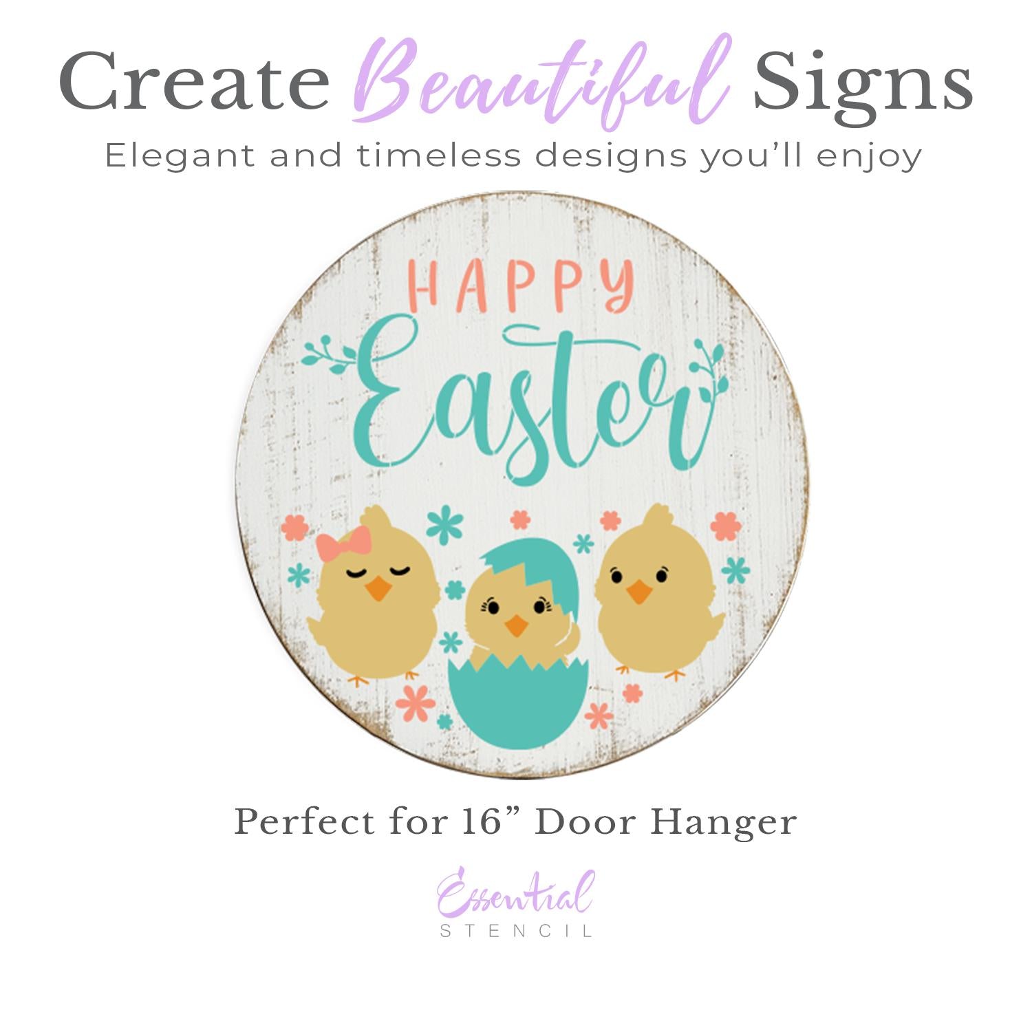 16"x8" Reusable Happy Easter Chicks Door Hanger 16in Sign Stencil