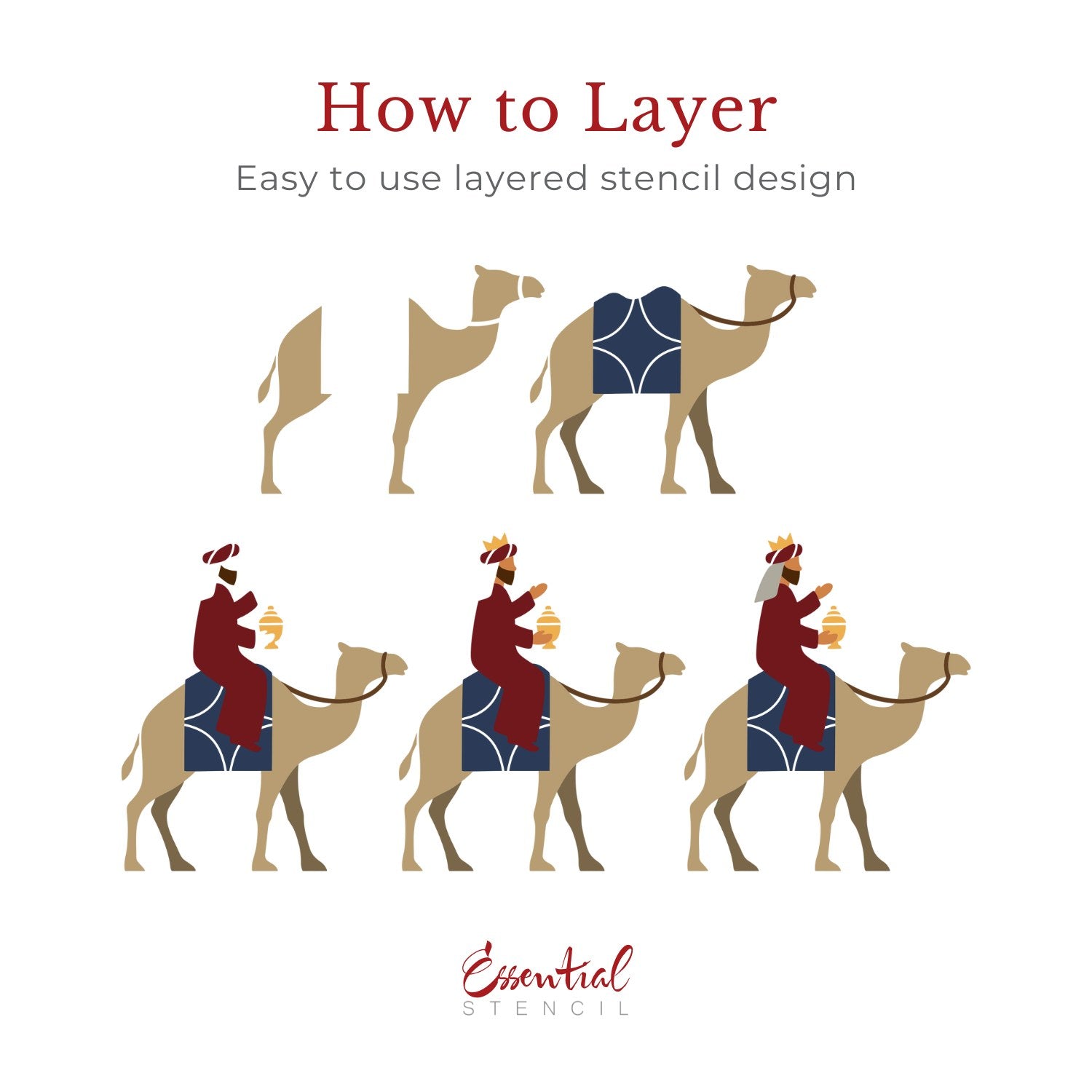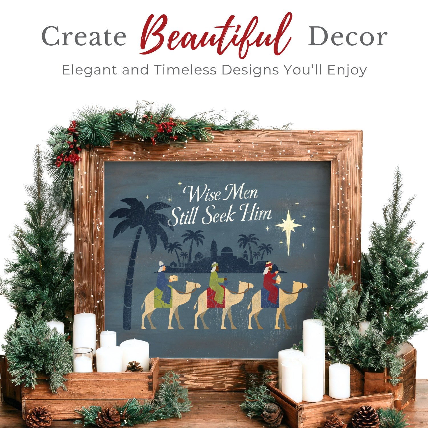 Celebrate the journey of the Magi with this beautifully detailed Three Wise Men stencil from our Build A Nativity Scene Collection. Featuring elegant silhouettes of the Wise Men and their camels, this design captures the reverence and awe of that sacred night, a stunning addition to your nativity or as a stand-alone piece of faith-inspired décor.