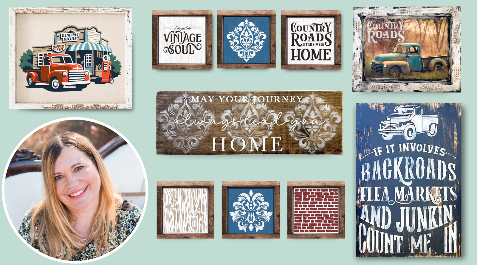 The Rustic Charm Collection, a collaboration with Melissa of Junk and Craft Treasures, offers stencils and transfers to bring timeless, weathered designs to your DIY projects.