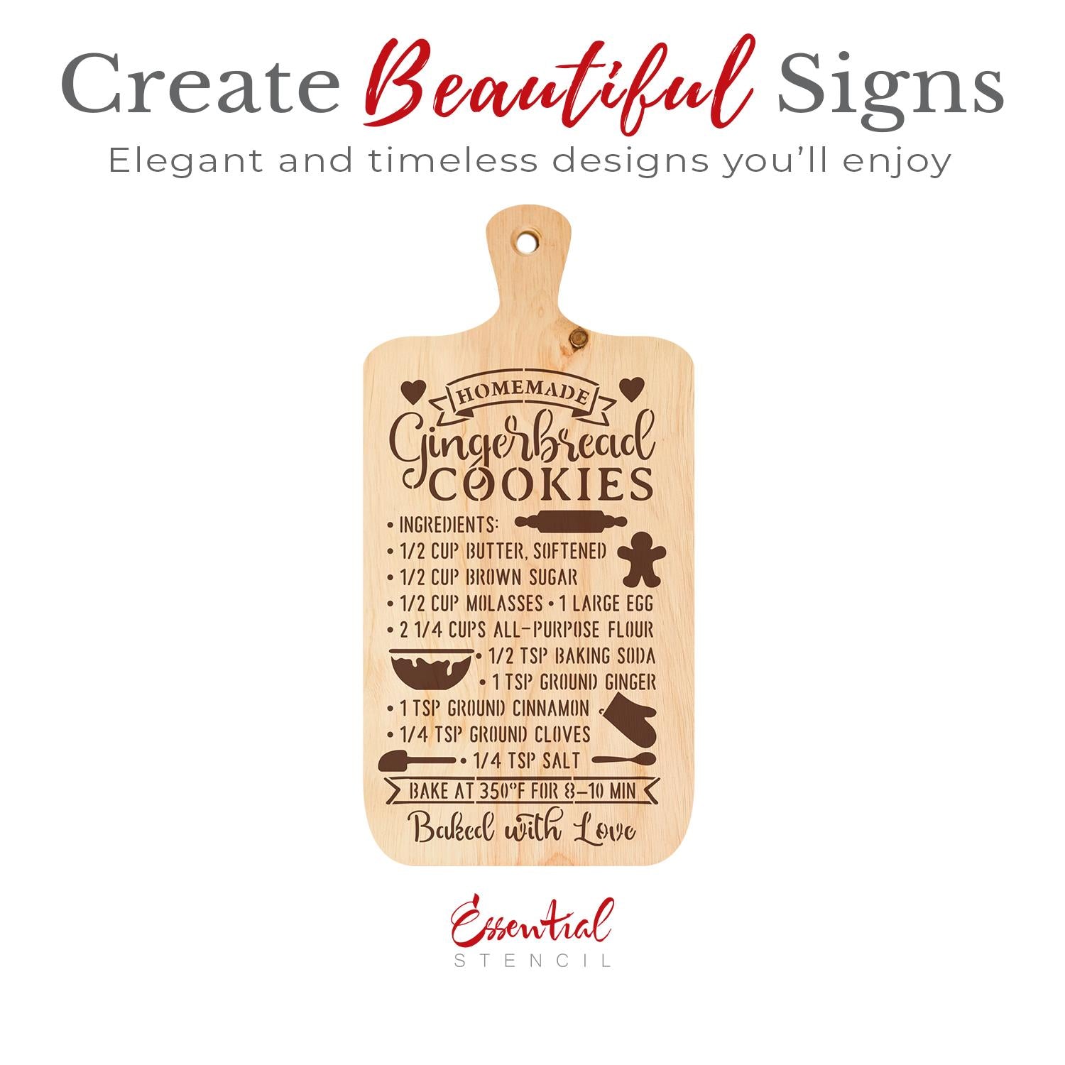 Create a festive kitchen or holiday display with this recipe-themed stencil, designed to look great on cutting boards, trays, or wall art. Perfect for gifting or holiday baking décor.