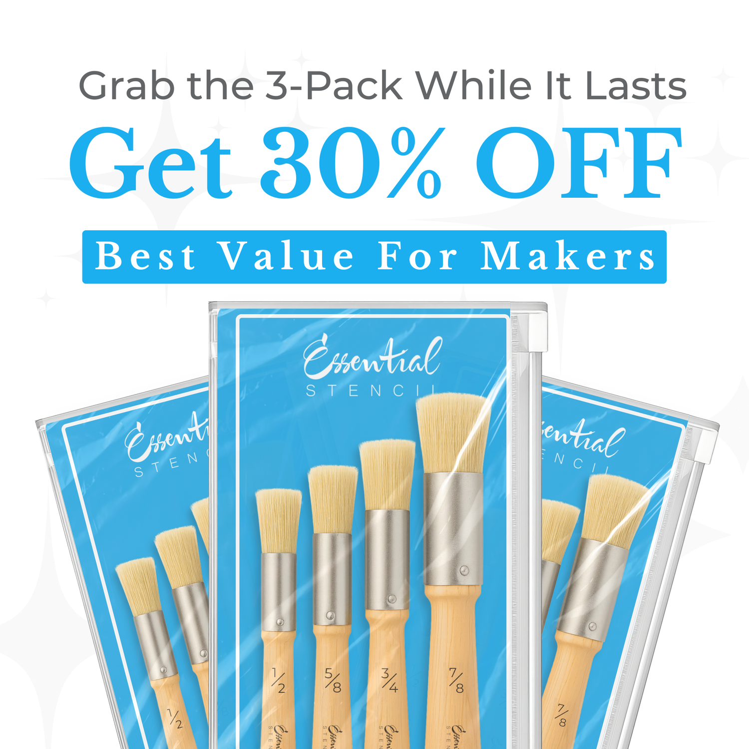 Designed for clean, crisp paint application on wood, fabric, and more. Our natural bristle brushes give you full control with minimal bleed and pro-level results every time. Now available with a limited-time 30% off 3-pack offer!
